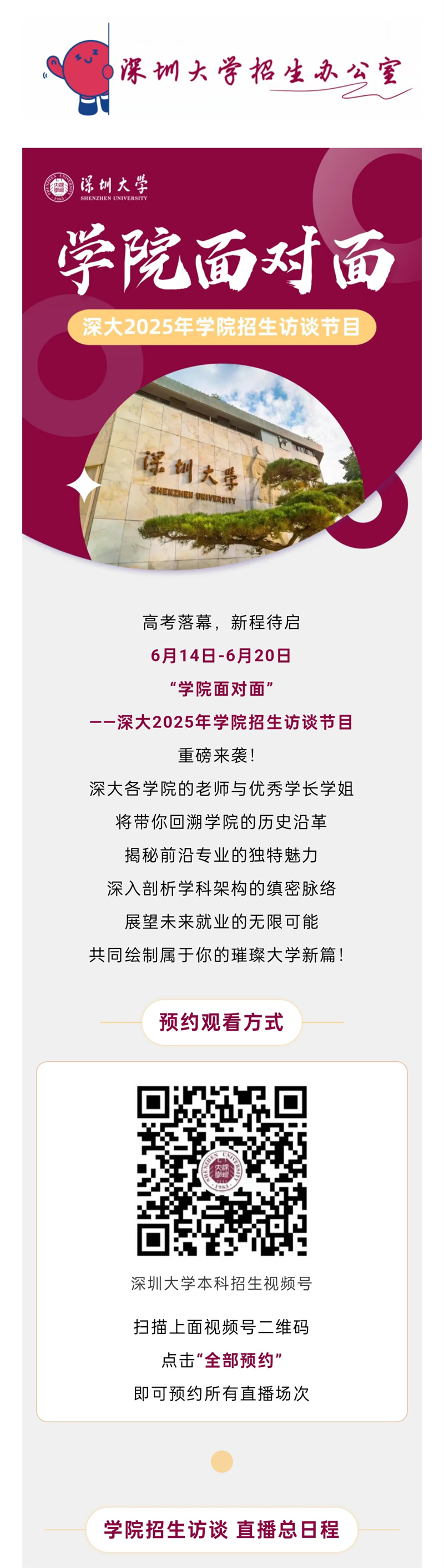 欢迎大家锁定深大本科招生直播间